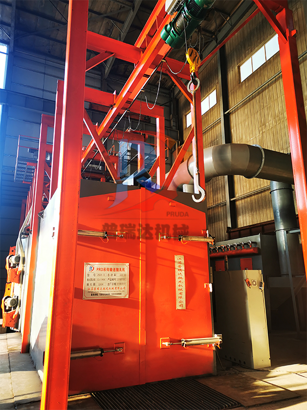 吊钩通过式抛丸机的作业流程是 **“接连运送→关闭整理→弹丸循环→环保除尘”** 的闭环进程,具体步骤如下: